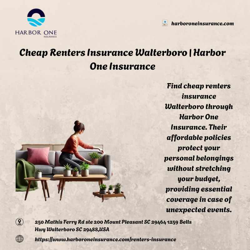Find cheap renters insurance Walterboro through Harbor One Insurance. Their affordable policies protect your personal belongings without stretching your budget, providing essential coverage in case of unexpected events.